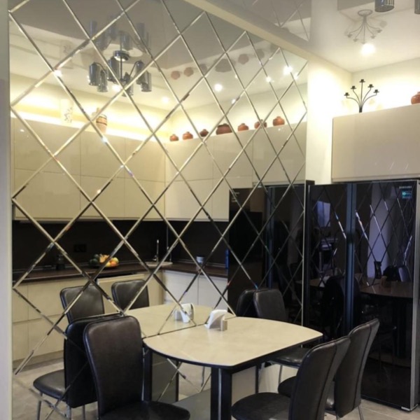• Зеркальное панно на кухонной стене
